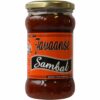 Javaanse Sambal van Lekkerbekkie is een hete Surinaamse sambal met de krachtige smaak van Madame Jeanette. De combinatie van tomaat, ui, knoflook, gedroogde garnalen en kruiden zorgt voor een volle en vurige smaak die direct opvalt.
